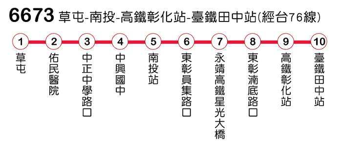 6673 草屯-南投-高鐵彰化站-臺鐵田中站(經台76線)